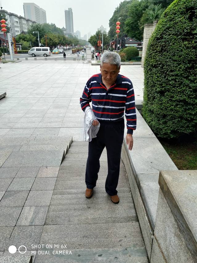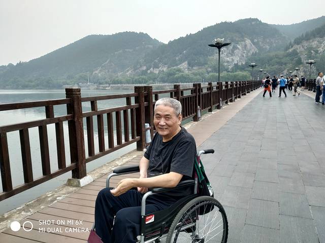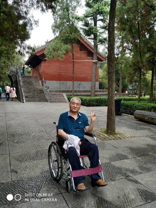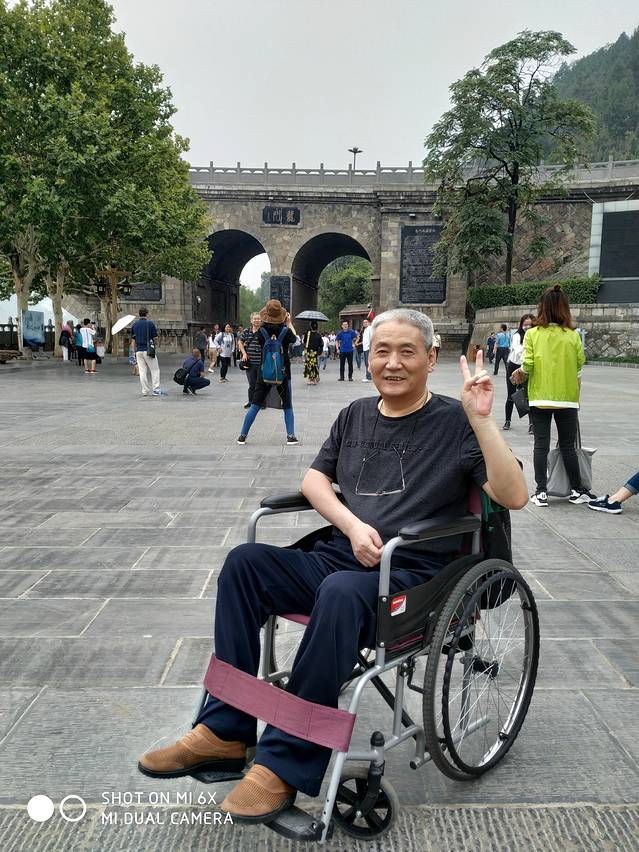 这次我要坐轮椅了。因为,从现在开始,路变得不太平,有点疙里疙瘩。而且,这样的路有2公里,我的腿不大行。