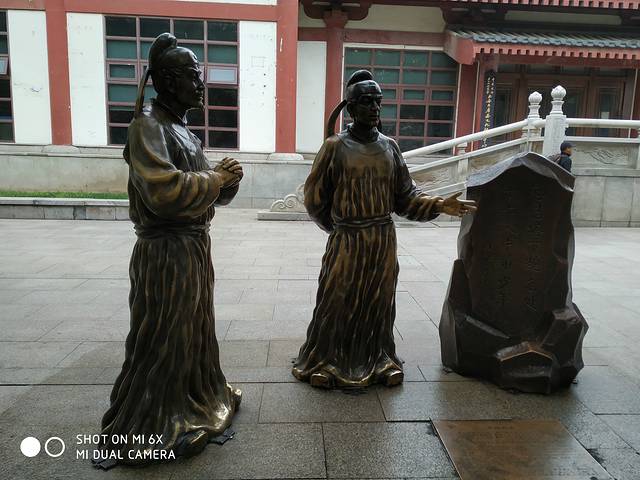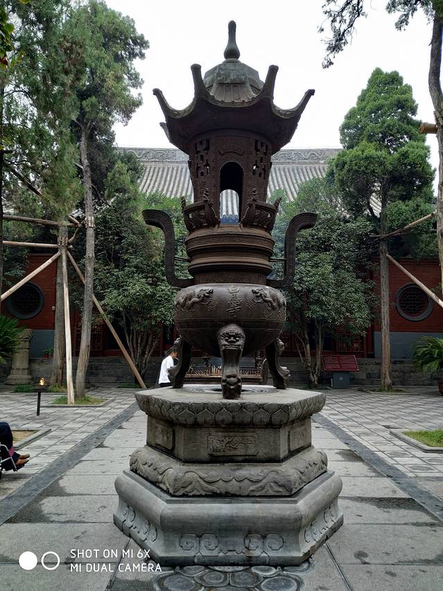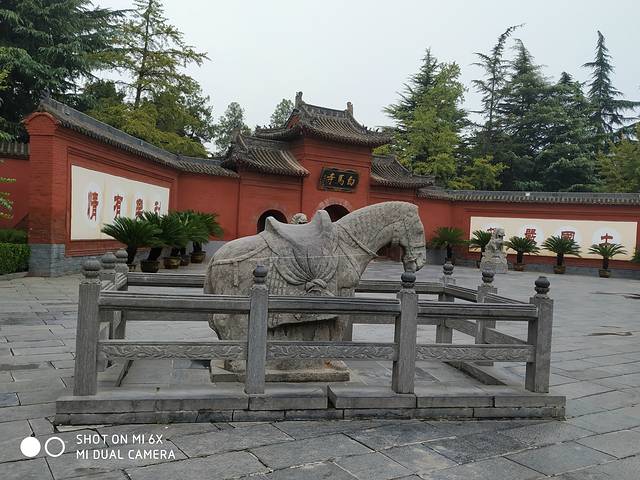 山门外有两匹石马,左右相对,石马1.8米,长2.2米,头戴辔络,身置鞍鞯,性情温顺,雕工精细,相传为汉代的驮经之马,实为北宋太师太保魏咸信墓前的石像。