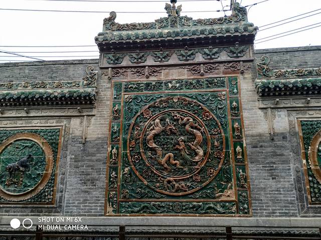 琉璃照壁整组图案繁复精美,纹饰复杂。