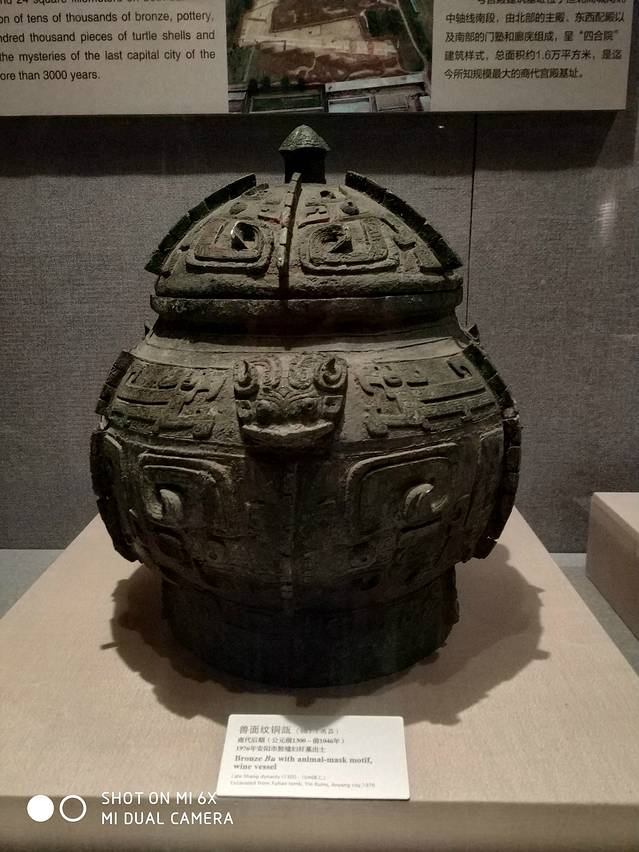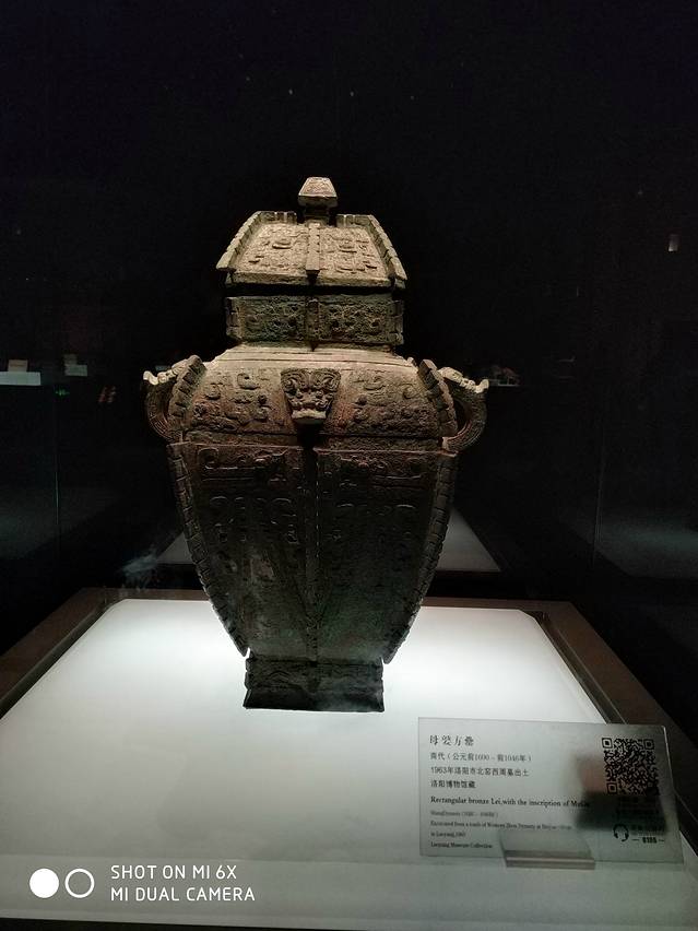 母鼓方罍(léi),商代青铜器。整件器型外形稳重大气,器身纹饰华丽,在商代晚期流行一时,是商晚期青铜酒器中的精品。