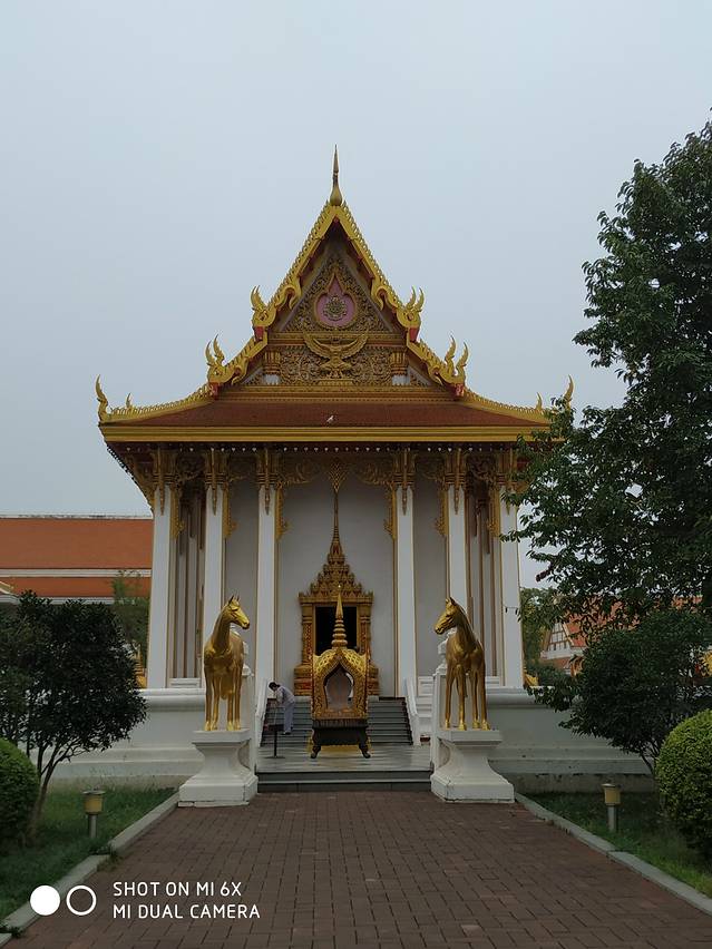 泰国佛殿:其中有一座泰国善信瓦塔纳先生及多位泰国善信捐赠的高7.2米,重8吨的铜质镀金佛像。该殿坐南朝北,三层重檐,黄瓦覆顶,内饰壁画。
