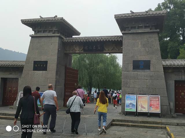 离开关林庙,打车,去龙门石窟。我们直接到龙门石窟景区东北服务区,在那里买票。我有残疾证,两个人都不用买票,只是买游览车的票,一张10元。而且,有一个工作人员看到我不方便,就跑上跑下的帮我们买票,还租了个轮椅,一直送到游览车上!我们也没问她的姓名,在这我们谢谢她了!