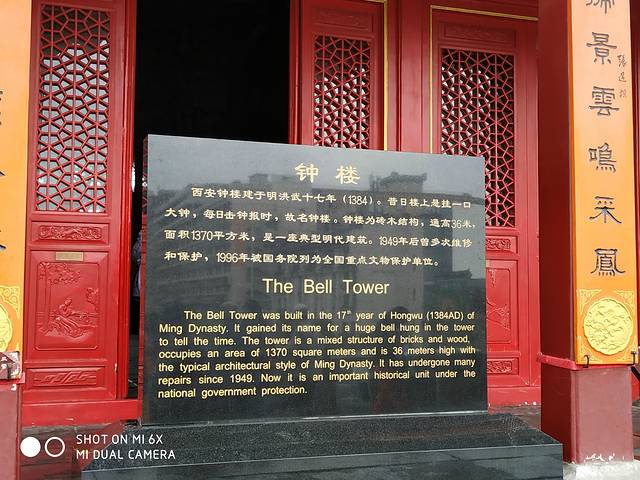 楼上悬一口大钟,用于报警报时,故名“钟楼”。现在叫做景云钟。