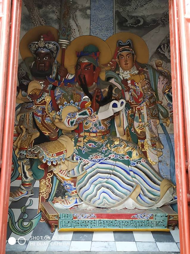 来到春秋殿,是“关公读《春秋》像,远观雕像,形象逼真,栩栩如生,可谓雕塑之中的上乘之作。