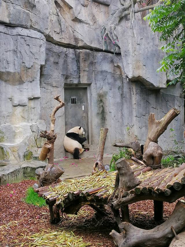 这只叫美美的熊猫,十分招人爱,在我们面前翻跟斗,还摆姿势,爬到树枝上躺着吃,让我不禁想起王者荣耀游戏里,我最喜欢的梦琪“熊猫皮肤”,真想抱抱这可爱的国宝。