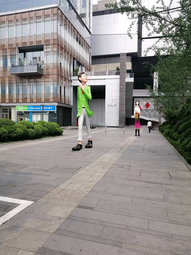 写字楼区域,晚上很晚都还能看见,加班的闪闪灯光。这里勤劳的小蜜蜂真多,这对塑像表达白领丽人们的外形。自信、勇敢、靓丽!
