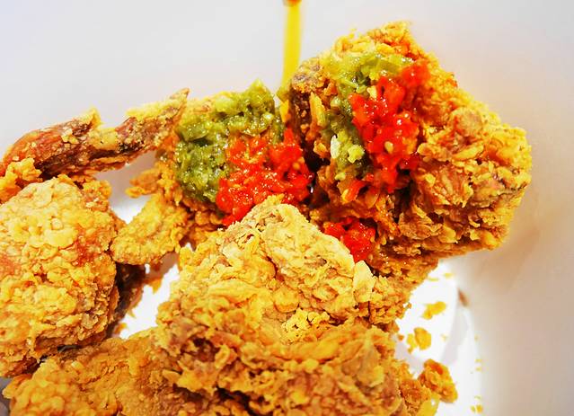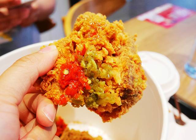 加了辣椒酱很解腻,外皮还脆,能吃辣的话,还是比较好吃的。