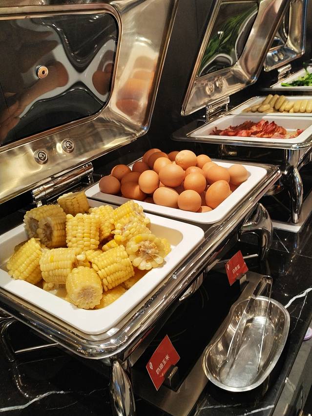 营养丰富,玉米,鸡蛋,牛奶,培根都有,不过火候有些一般,跟大多数酒店早餐品质比较类似。