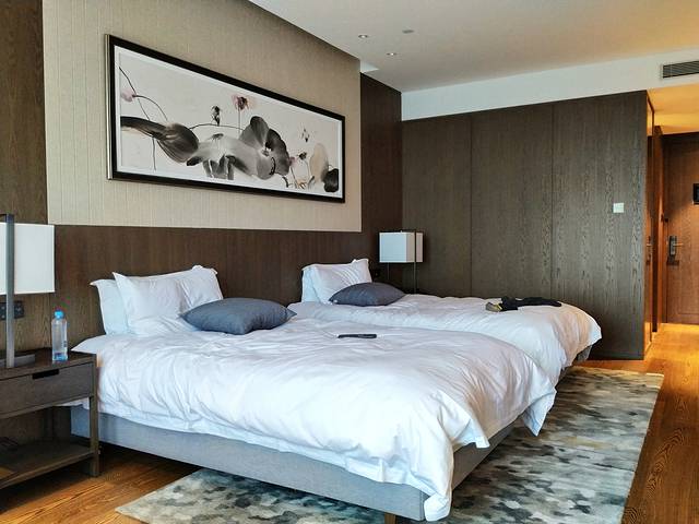 房间面积比较大,环境也不错,不过有少许的装修味道,房间内配了空气净化器。