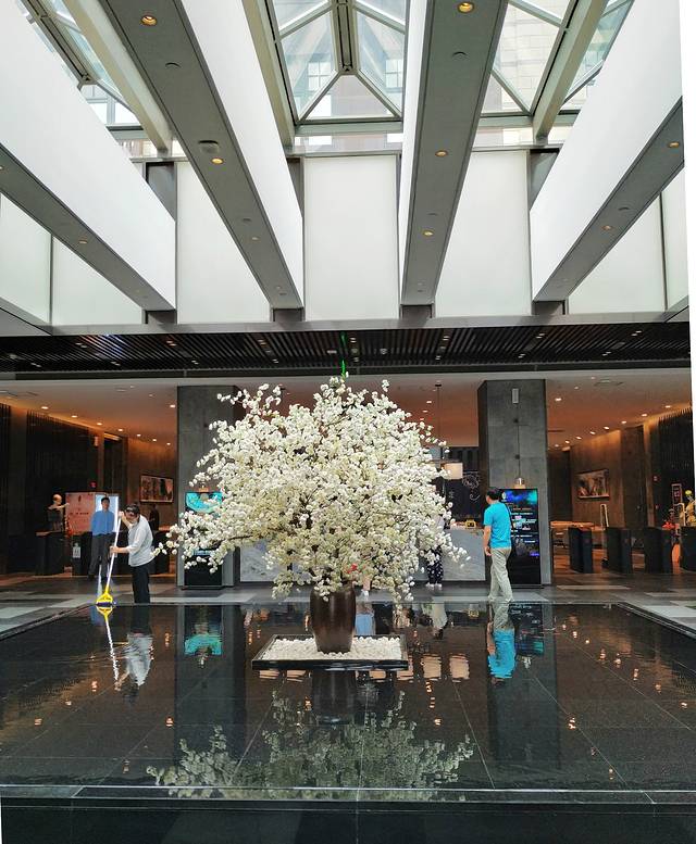 大厅面积比较大,还有休息区域,中厅的景观鱼池很有特色。