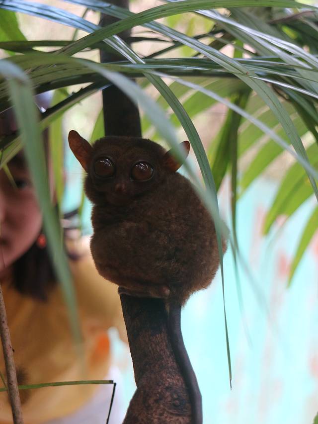 地方很小,进去之后要小声,有专门的负责人带你去看眼镜猴,有点像野生动物园放出一部分动物供游人观赏的样子。眼镜猴是昼伏夜出的,白天就趴在树上一动不动,有成人手掌那么大,尾巴很长,眼睛很大,是世界上最小的猴,听说也是我们现在常见的大眼外星人的原型。