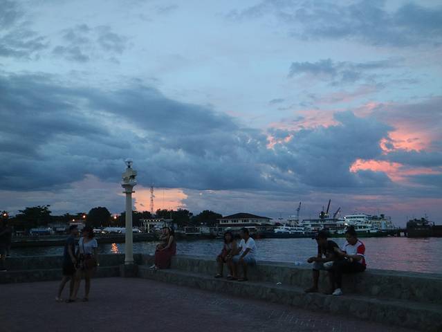 一条沿海的大路吧,从黎刹公园走过去的,真的有些累。路上刚好是太阳落山,阳光很暖,金灿灿的。多走一会儿会有小台阶可以让人坐,也有很多当地人和小摊贩在卖一些零食。吹着海风看看日落,还是很惬意的。