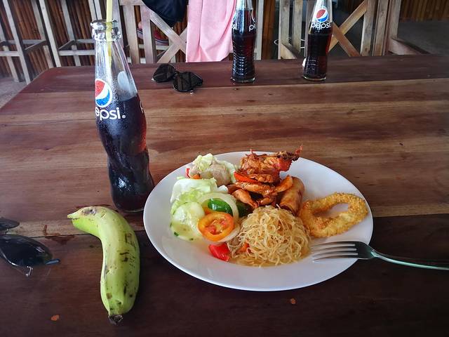 就是岛上的设施不是很好,还是在出发前就换好泳衣,岛上的厕所都是自己舀水冲的,吃饭时候因为是露天还有苍蝇飞来飞去,还好有当地小黑帮忙在旁边驱赶,不过体验度真的是一般,还好风景不错。