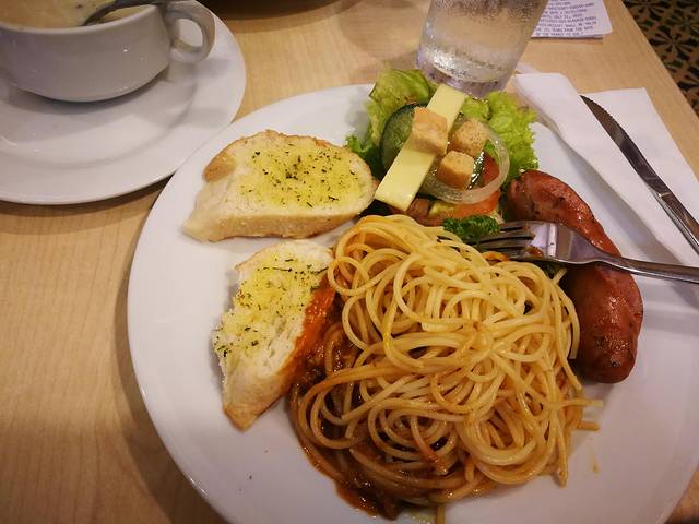因为吃饭时间比较晚了,瞎找了一家店,菜单基本上看不懂,瞎点了一通。