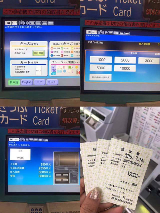icoa卡余额不足了~充值比较简单~在自助机上换成中文~然后按要求操作就行~