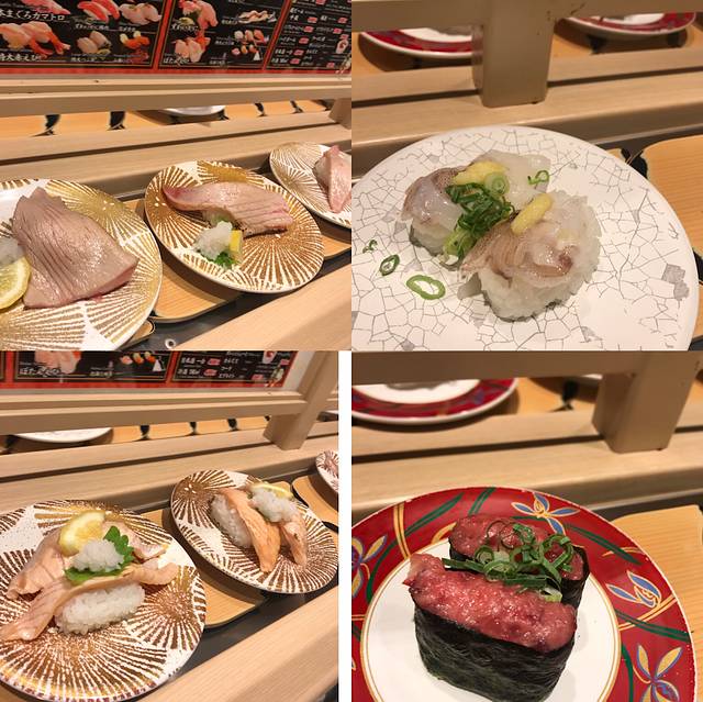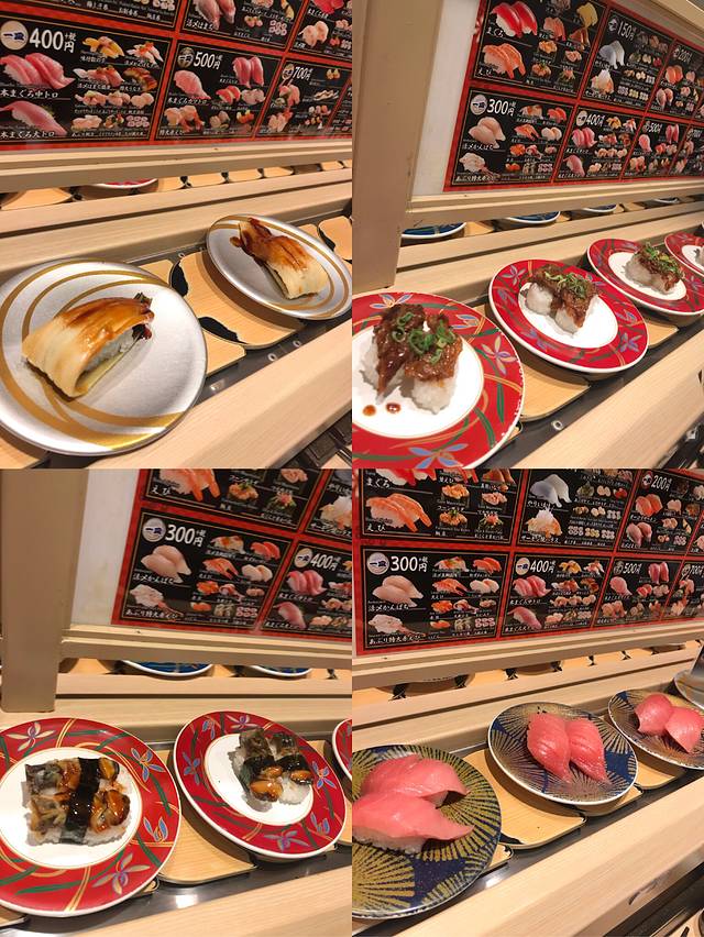地处繁华地带这价位这味道这新鲜的简直良心到不行👍 价格真的真的超便宜~这家回转寿司和国内一样,用盘子颜色收费~价格100~700日元 /1盘 物美价廉👍