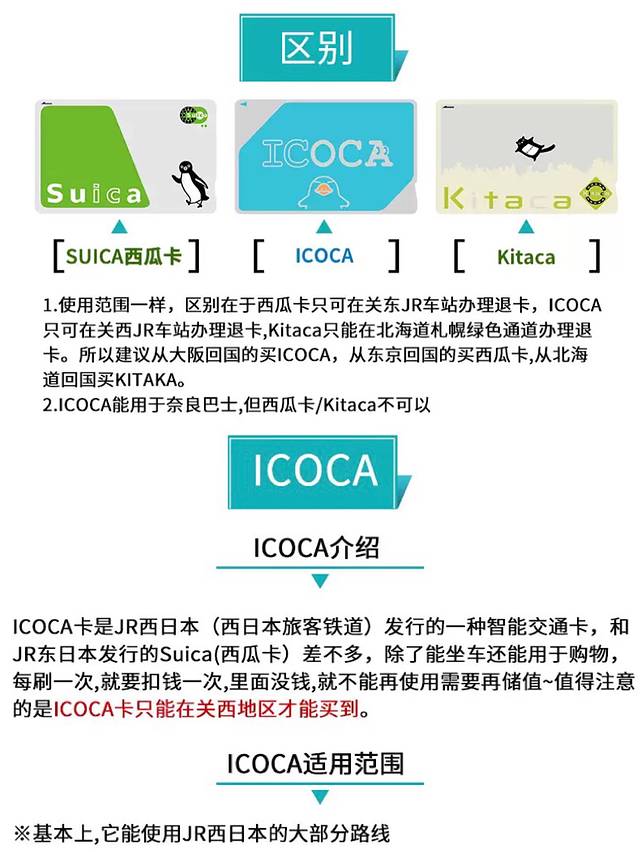 交通卡最后选择了icoca卡~500日元押金 里面含1500日元现金~特别提醒:儿童的卡需要去JR站拿儿童护照购买~由于担心刚到那找不着地方所以我们给孩子也买了一张成人卡~