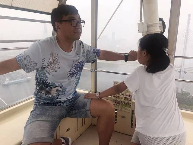 老公全程这个姿势坐完😄 大气都没敢喘~就差把钢把手捏瘪了