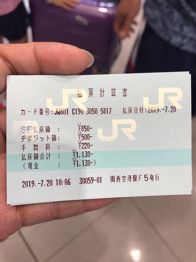 使用icoa卡的朋友~最后在关西空港T1航站楼右侧JR线绿色窗口可以办理退卡~但是请注意!如果卡里有余额的话每一张卡是需要扣220日元手续费的~