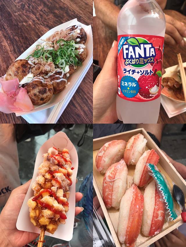 章鱼小丸子500日元 芝士棒450日元 蟹乐道寿司2300日元 饮料忘记了~