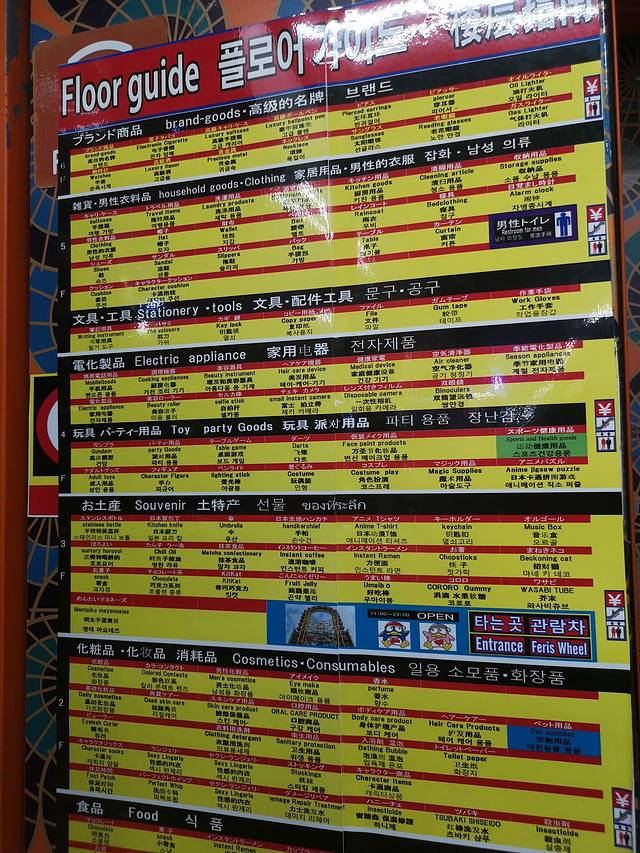 一共六层楼的唐吉诃德大道在里面可以迷路~每一层弯弯曲曲的好多小路~顶层二手奢侈品~好多人奔着这来的~!最有特色的是店铺外面竟然有一圈观景摩天轮~
