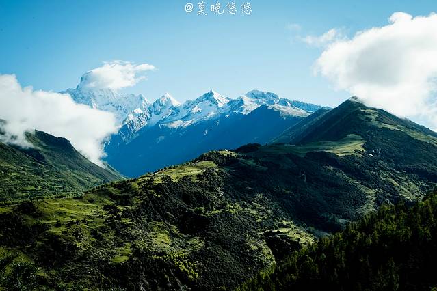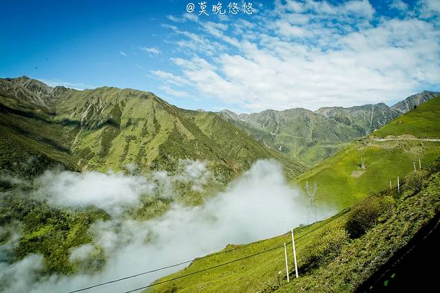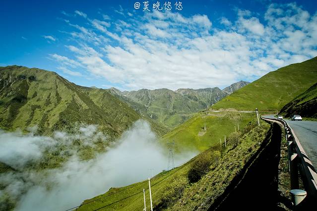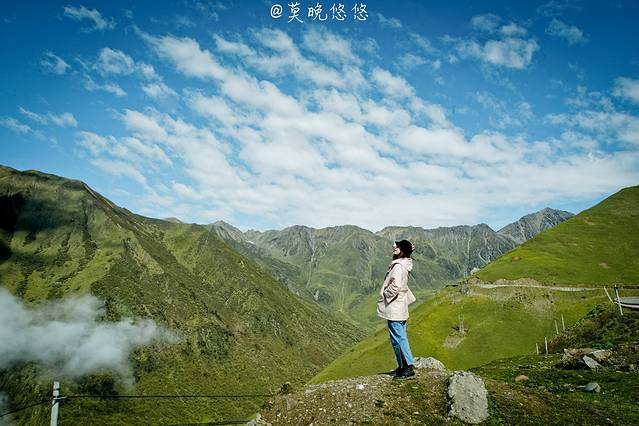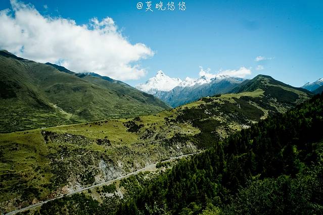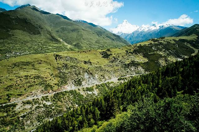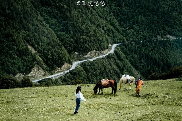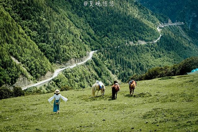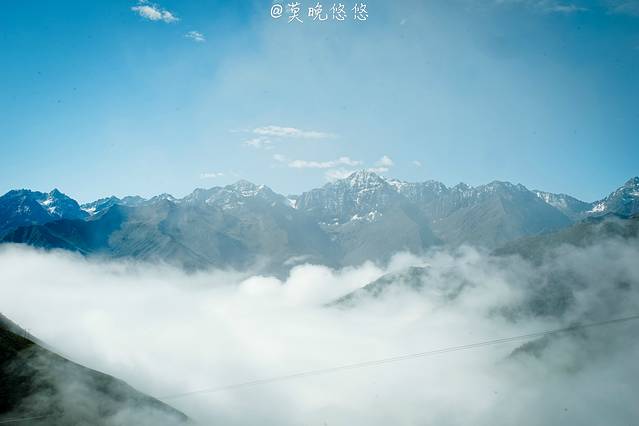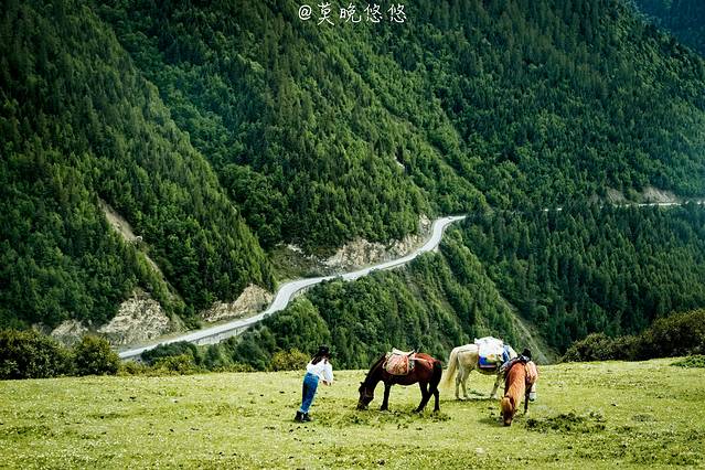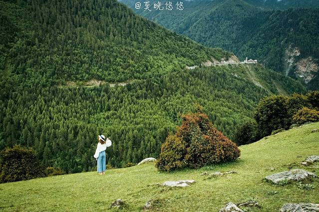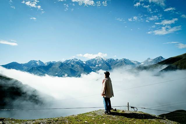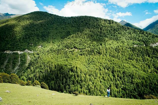 氧气越发的稀薄,天空也越发的蓝,只是从成都出发的时候还是穿着短袖,到了这里也要默然添衣了,这是一种高原特有的凛冽,直击身心。偶尔下车休憩的时候,站在层峦叠嶂里,便不由自主卸下在都市里紧绷着的神经,放轻松,有一种置身于大自然里的惬意,也有一种位于瑞士的错觉。