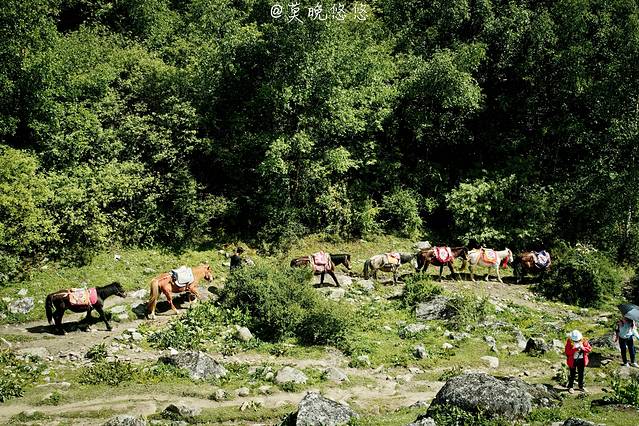 这里的风景原始而壮美,湖水清澈见底,有花海子、浮海、白海、蓝海、黄海等10多个高山湖泊。景色与双桥沟、长坪沟完全不一样。我们主要看了前半段朝山坪的风光,基本都是高山草甸为主,除了是欣赏四姑娘山的最佳之地,也是摄影爱好者拍摄的好地方。