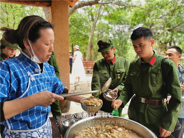 知青村现在还有体验项目,我们纷纷换装之后,突然有了种一秒穿越回《芳华》的感觉,十分有感觉。吃了大烩菜、几位女汉子还学着《芳华》里的造型拍了照,那感觉真的相当棒了!