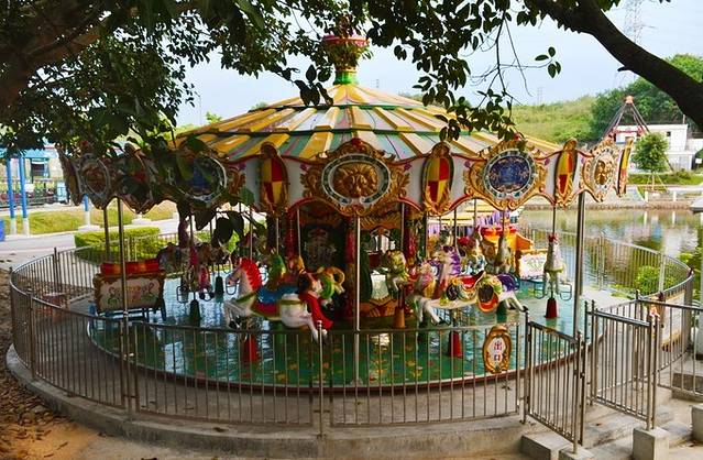 旋转木马和小飞机,有时候快乐就是这么简单,玩一次旋转木马,看一次傍晚的夕阳