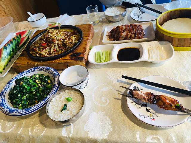 双人餐,含半套烤鸭109,我两战斗力不行啊,还剩好多,菜很好吃,推荐!