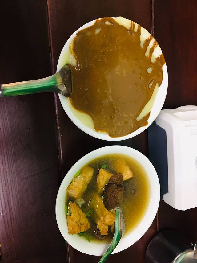 油茶,看着好看……结果就尝了第一口,继豆汁儿后的第二个北京神奇小吃……丸子豆腐汤不错,比较合我两口味
