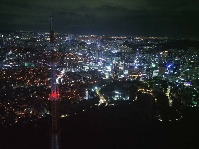 漆黑的夜晚,风有点大,有点凉,我一个人爬上山顶,夜色撩人,好似欢心!这是来到首尔的第一个夜晚,打卡南山首尔塔!