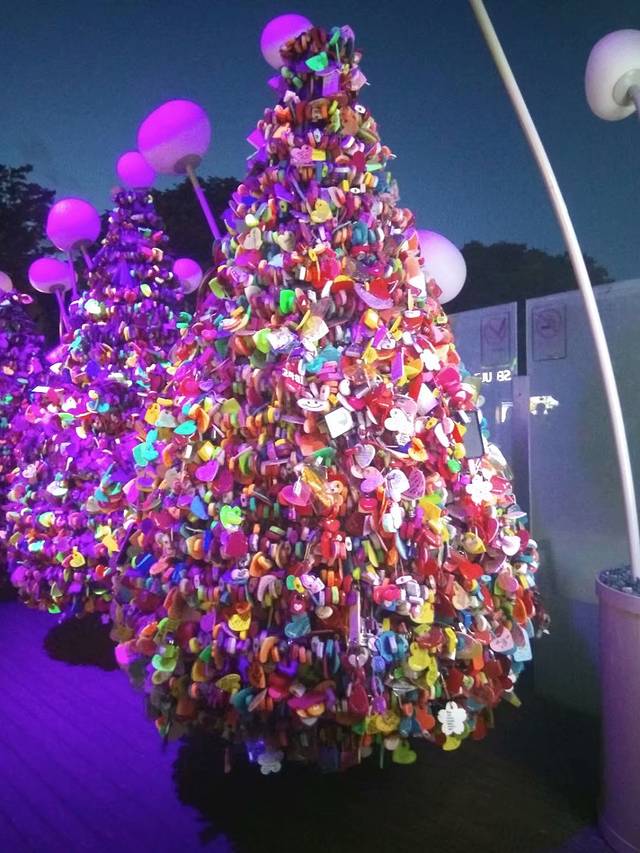 露天的天台还又些好玩的,比如有很多琐堆成的树,也有仿造巴黎的心锁墙和埃菲尔铁塔!