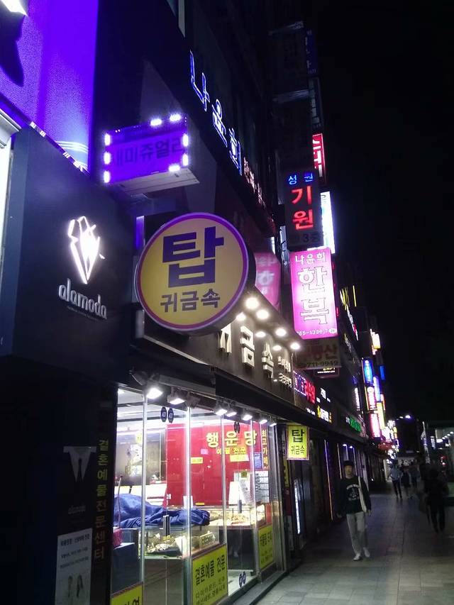 这是我想象中的首尔市,有闪亮的灯牌组成的商店,排成小小的马路,有点像台湾,又有点像日本,但没有日本这么多的人口!