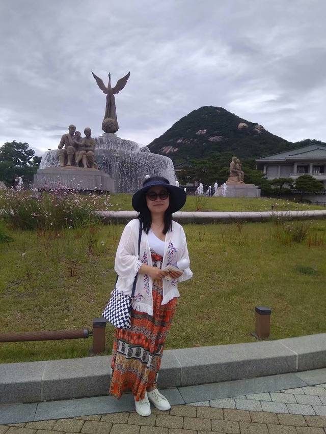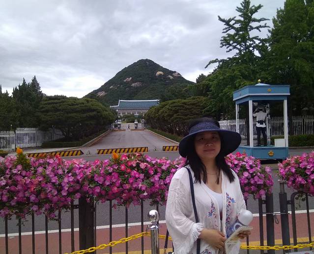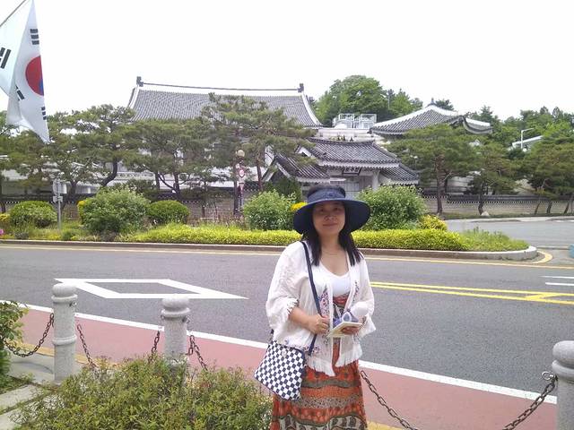 据说我身后的青色瓦房就是韩国总统文在寅的办公厅哦!来张照吧!:)