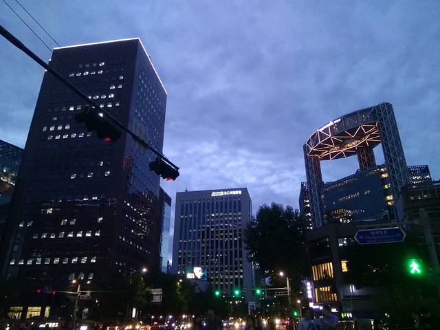 一栋栋的楼,不是很高,不懂韩语,底楼是银行,我只是想着电视剧里都说韩国的美容是最棒的,可是在市中心也没见一家美容诊所呢!