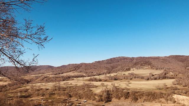 出发前做过功课,大概清楚蛤蟆坝是摄影爱好者的天堂,此地多丘陵山地,地貌独特,秋天景色绚丽多彩,漫山遍野的红叶,明黄的白桦叶融合在一起,景色美不胜收。那么初春他会是什么颜色?会带给我们怎样的惊喜?带着好奇与期待,我们驶入御克线,奔往此次旅行的落脚地---蛤蟆 坝光 影客栈。