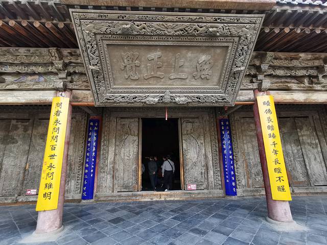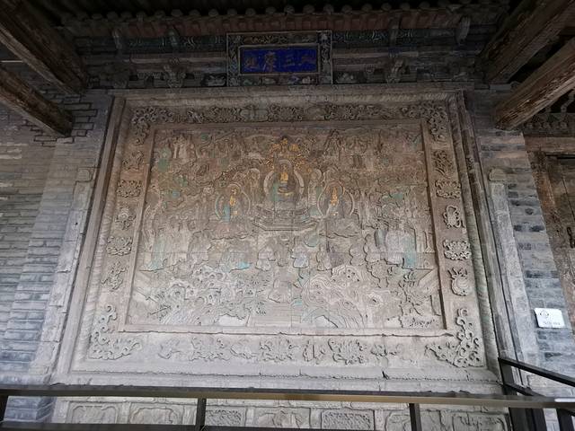 殿外墙壁上的木雕画,画中佛像都是贴金的,残存金箔可见,可想当初如何金碧辉煌!