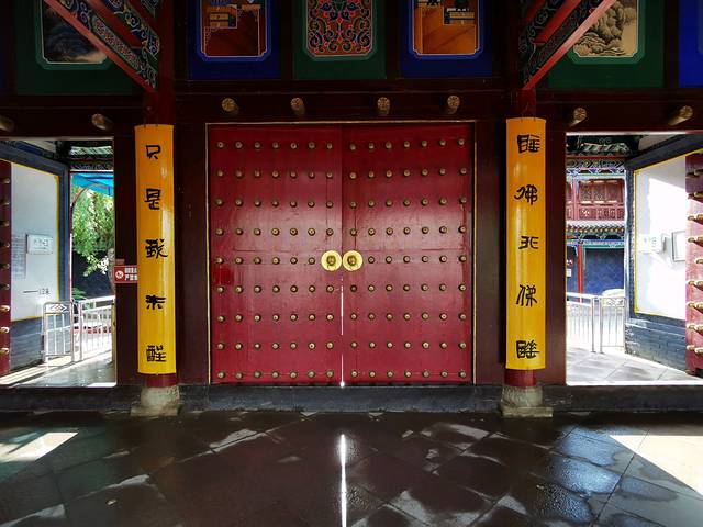 公元1445年(明正统十年)明英宗皇帝朱祁镇将正统五年官版印制的经卷345种,685函,3584卷敕书颁赐给大佛寺,现在这里藏有泥金书写的《大般若波罗密多经》是国内最完整的,也是大佛寺的镇寺之宝!游览的时候看到了,但是没有太在意。