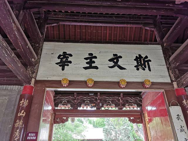 这是文庙门口悬挂的一块匾额,看看没有落款,就问讲解员,讲解员一时答不上来,说一会儿问清楚了告诉我。等游览快结束时,好像突然想起来了,告诉我说:在孔庙提字,不敢留名!这大概和班门弄斧一个意思!