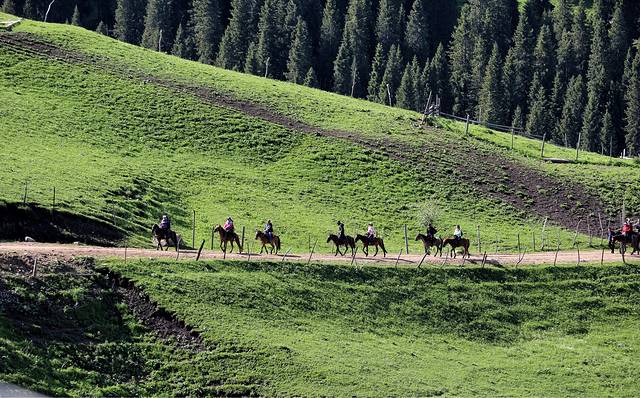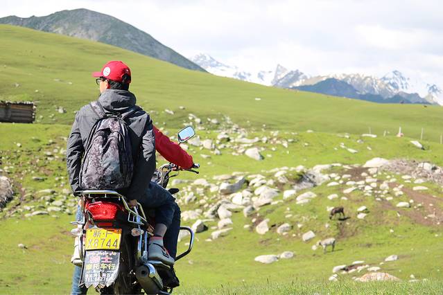 昨天让旅馆老板已经联系好了摩托车,载我们上高山湖,300元一人包来回。这里要说一下,上高山湖有两种交通方式,一种是骑马,一种是摩托车,价格都差不多,但是骑马就慢点,来回6小时左右,摩托车来回就4小时左右。