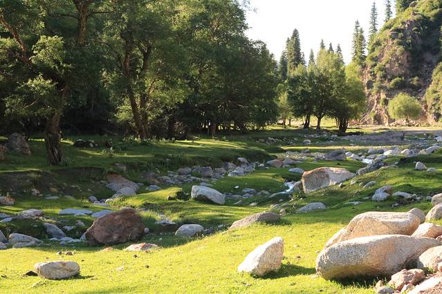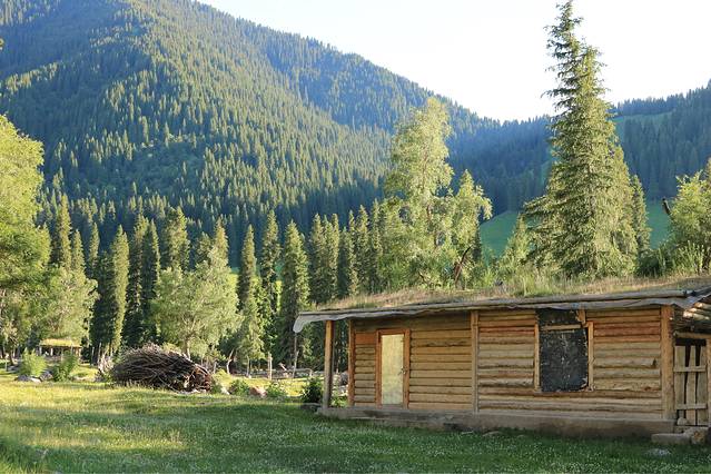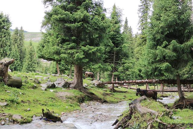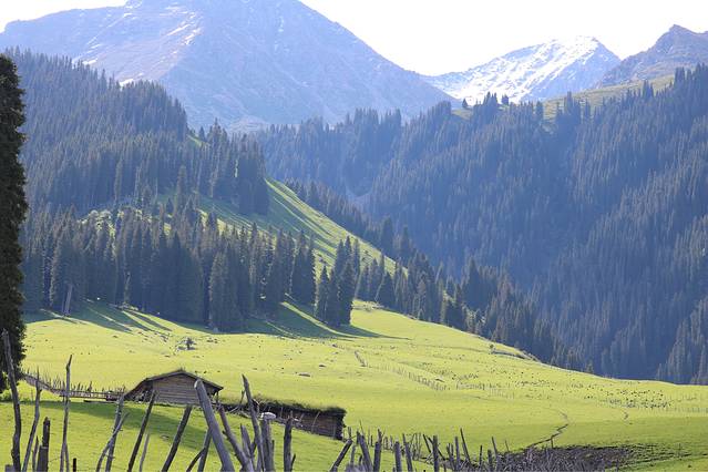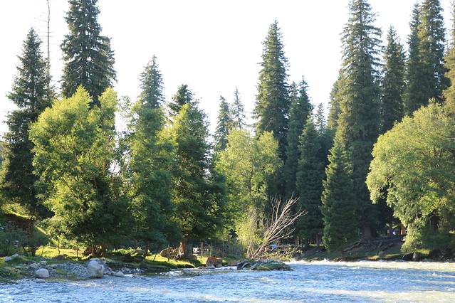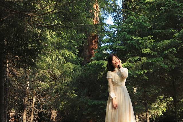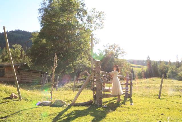 高山湖回来后,在旅馆休整了一下就出发去乌孙古道入口拍照。乌孙古道是徒步者的天堂,这里有溪流,有原始森林,有小木屋,像极了童话故事里的场景,我这次就在入口拍照,并没有往深入去,去的时候是下午7点左右,阳光暖暖的照下来,整片大地都好温柔