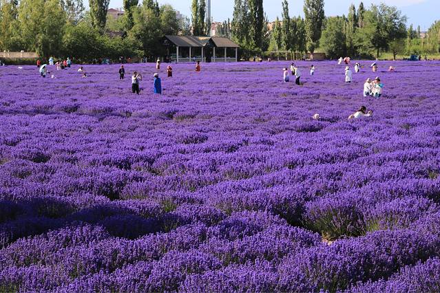 来的时候是六月底,这时候的薰衣草长得已经很高了,一进园子就闻到一阵阵扑鼻而来的薰衣草味道,还有看到一片满满的紫色,整个人简直兴奋得不行。解忧公主有两个,一个是庄园一个是农田,推荐去农田,农田的种植面积比庄园要大得多,旅客也比庄园少,庄园有好多团体游客到访