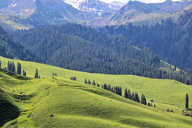这个地方作为我去琼库什台的一个中途休息点,因为从伊宁到琼库什台开车要6个小时,而且一般都是山路,所以就不想太累,把特克斯作为一个中点休息一下,县城的景点不多,我们那天下午3点就到了特克斯,在青旅休息了一下就去离街和中心逛了逛