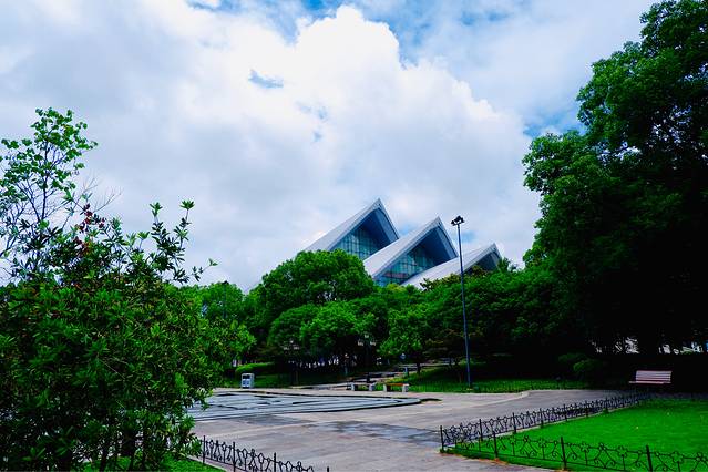 走过大善古塔的时候,看到一个类似悉尼歌剧院形状的建筑物