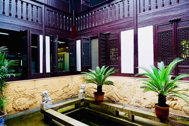 一个庭院,房子是3层的,一楼主要是展厅,上面太黑我也没上去,还是庭院比较有韵味一些,很浓郁的江南小镇气息。