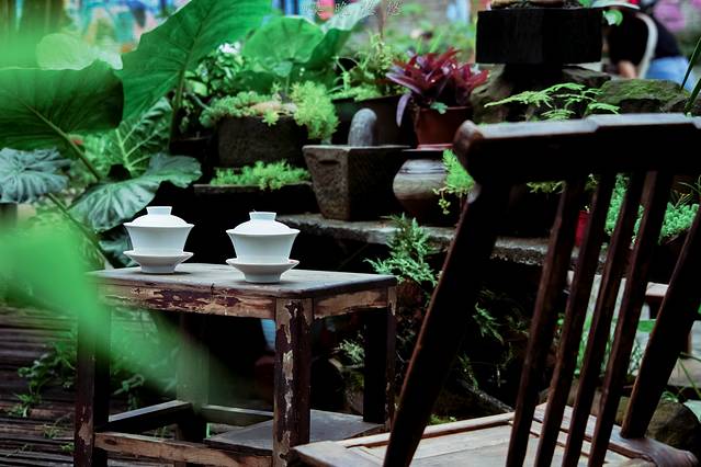 而书和茶便是这里的灵魂了,如若时间充裕,可以在这里小坐,喝着盖碗茶,享受几分属于老重庆时光的悠闲,相对比起屋子里的昏暗,我更喜欢院子的氛围。