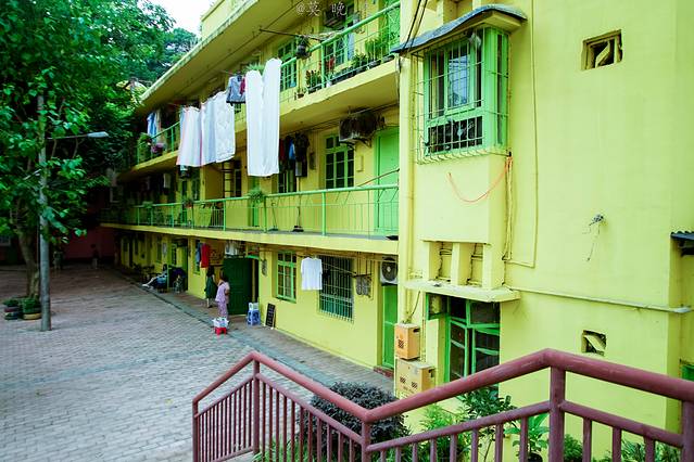 往里面走进去时,是一栋黄色的旧式楼房,上面的栏杆是粉刷成绿色的,在绿荫之下更是充满了初夏的味道。