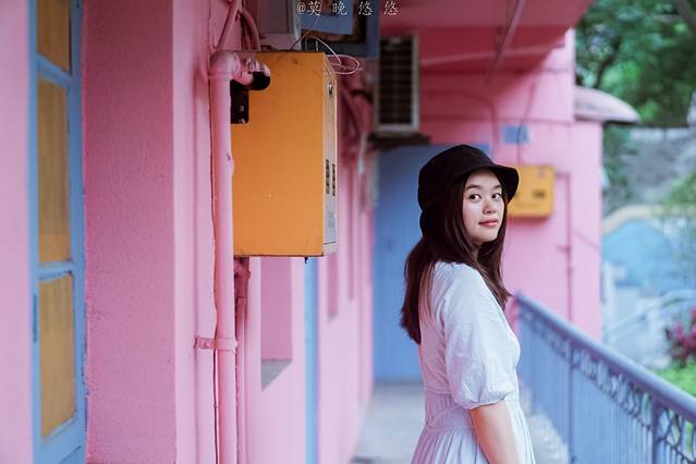转而继续往前走,另外一栋粉色的房子出现在我们眼前,少女心爆棚的我们立马上前拍照。下午的阳光斜斜打在脸上,倒是一幅岁月静好的模样了。
