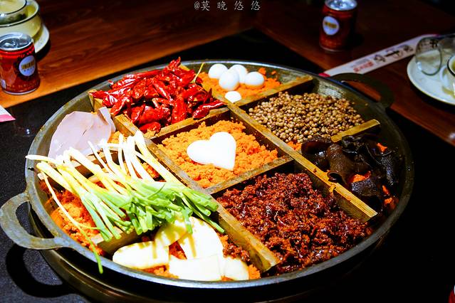 首先锅底一定是选九宫格的,才显得地道,当锅底端上来的时候,感觉那满满一锅的底料香到要溢出来了。